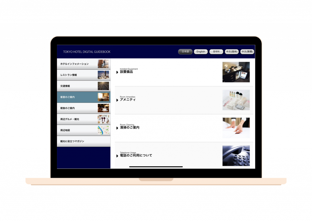 紙の案内冊子をなくし環境にも配慮したスマートなおもてなしを実現します。