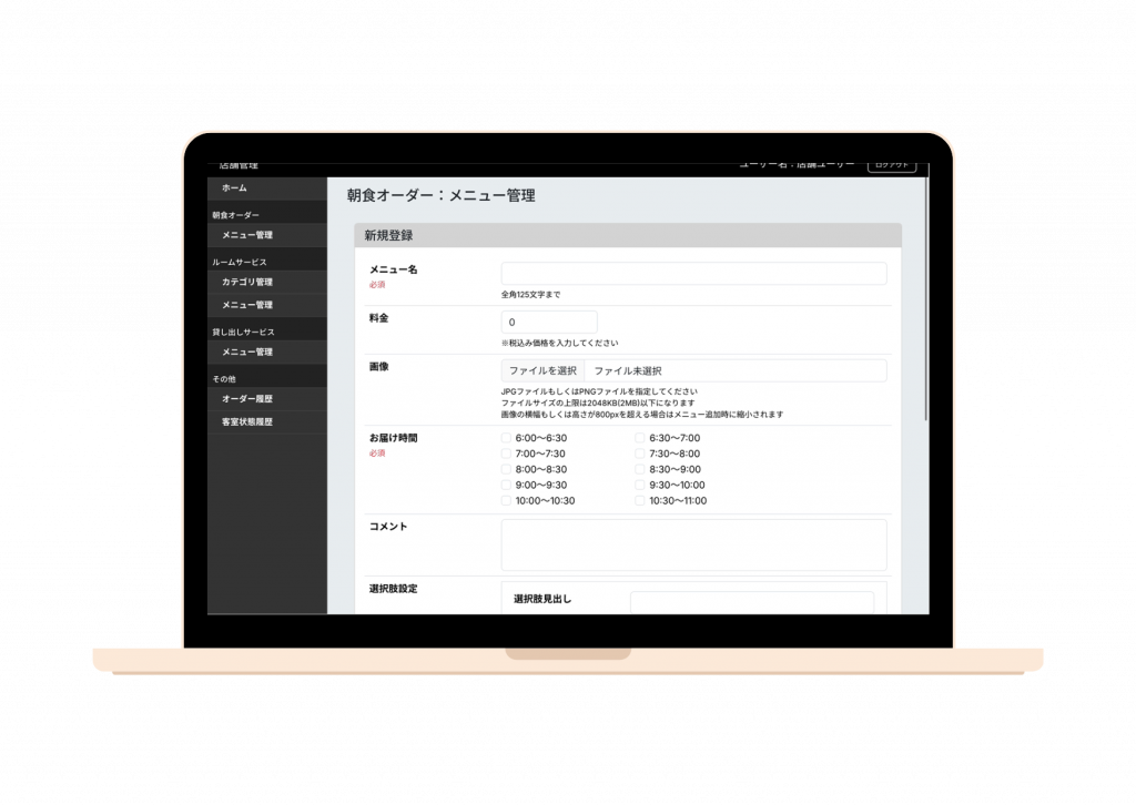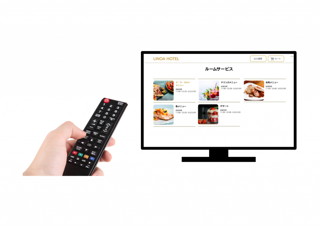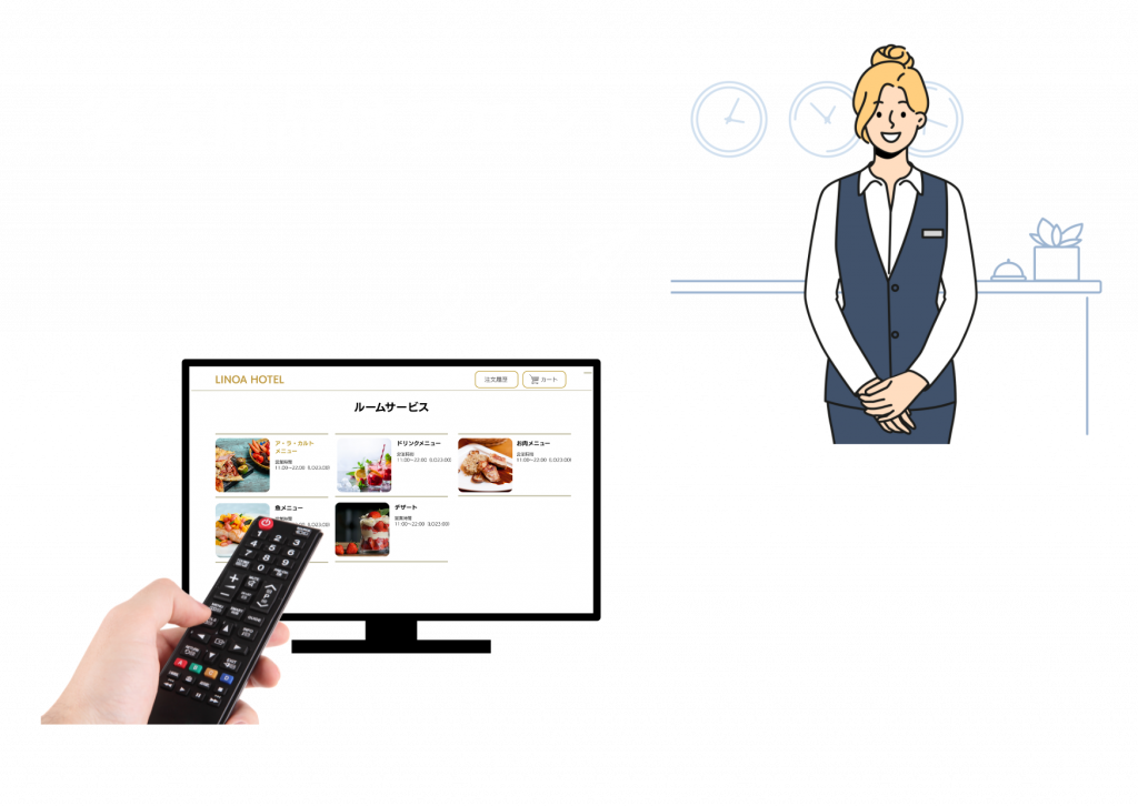 お食事やドリンクのご注文も、客室のテレビやお客様のスマートフォンからタッチ操作で簡単に。